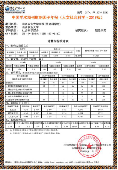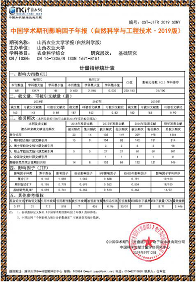 近日,《中国学术期刊影响因子年报(自然科学与工程技术〮2019版)》《中国学术期刊影响因子年报(人文社会科学〮2019版)》发布,《山西农业大学学报(自然科学版)》《山西农业大学学报(社会科学版)》各项指标数据稳中有进。
